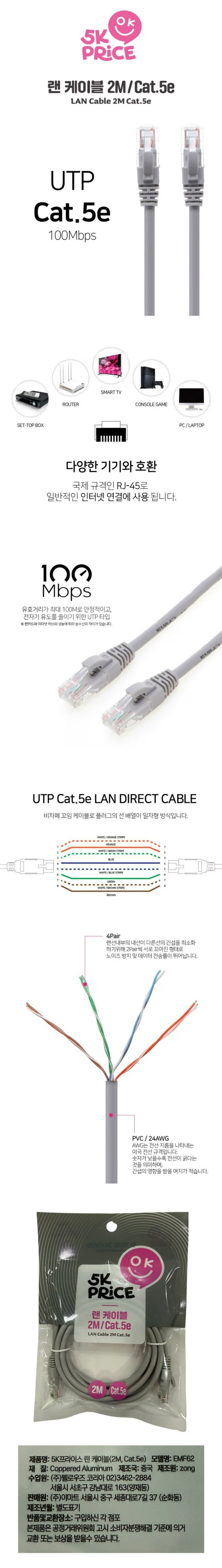 5K프라이스 랜케이블 2M Cat.5e