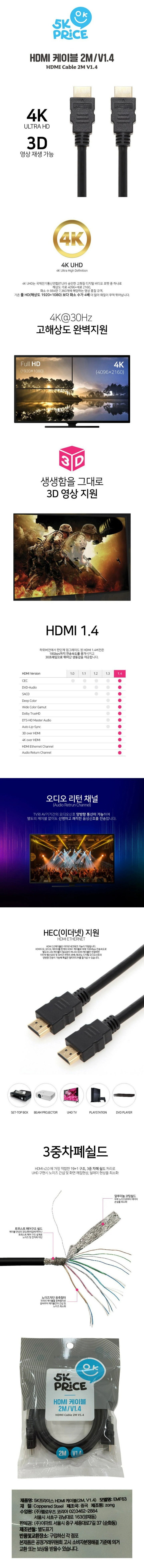 5K프라이스 HDMI 케이블 2M 1.4V