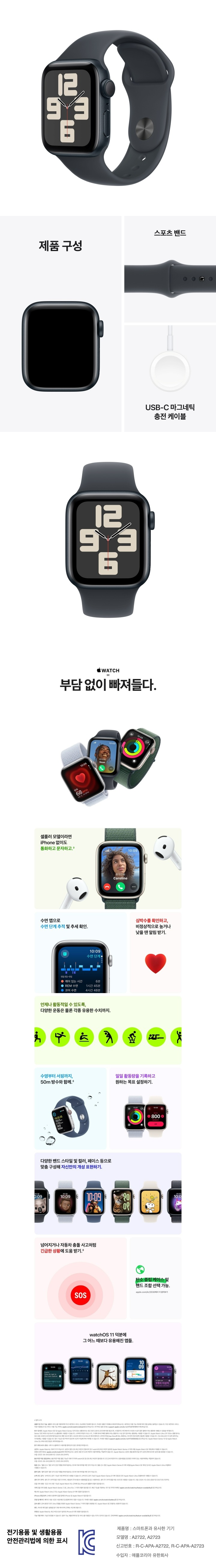 택)애플워치SE GPS 40mm 미드AL/스포츠ML