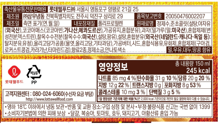 | 유통(소비)기한 | 점포 배송 상품으로 각 점포별 제조일과 입고일이 상이하여, 유통(소비)기한이 다릅니다.점포 상품과 동일한 품질을 유지한 상품이 배송됩니다.※ 해당 정보에 관한 문의는 고객센터(02-380-5123)으로 문의 해 주세요.주문일로부터 1년 이내 제조(포장)된 상품이 출고됩니다. |