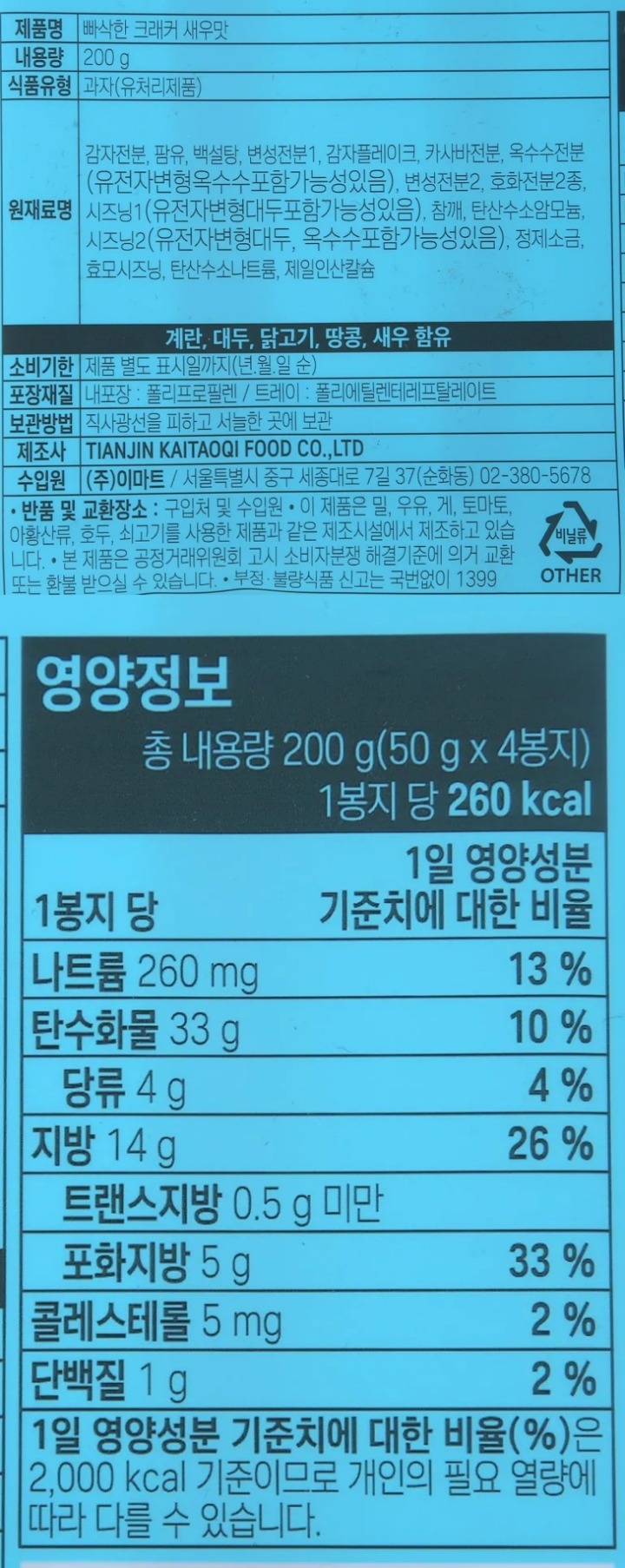 | 유전자 변형 식품 여부 | 상품 상세페이지 참조 |