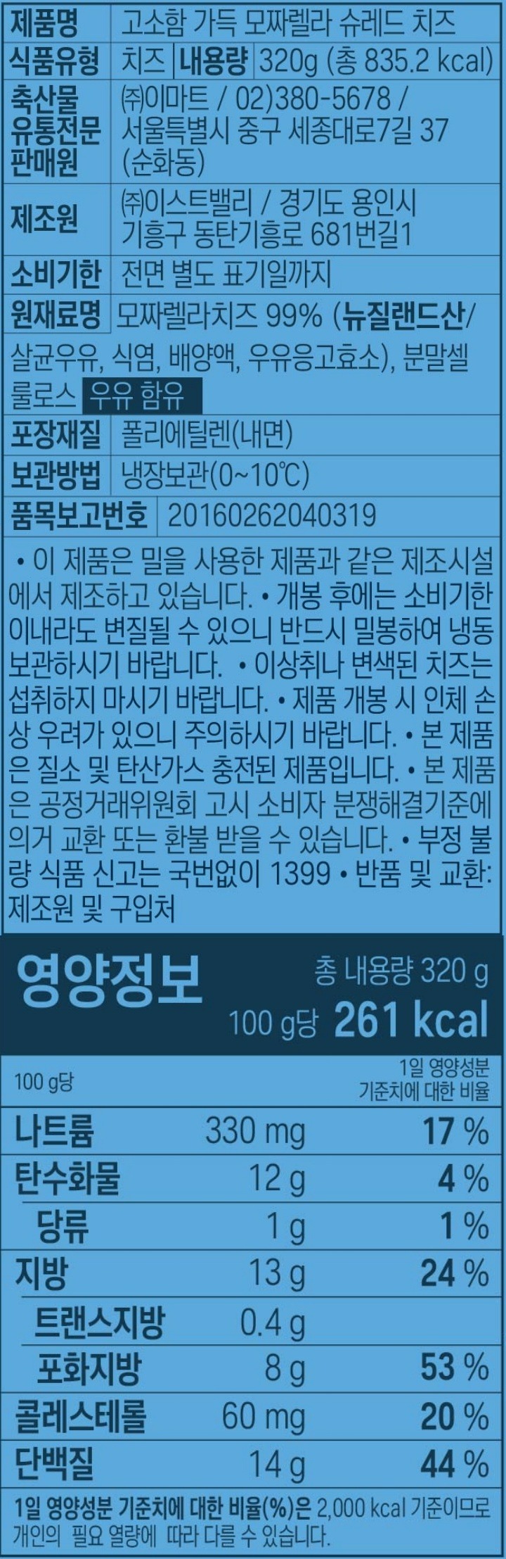 | 유통(소비)기한 | 점포 배송 상품으로 각 점포별 제조일과 입고일이 상이하여, 유통(소비)기한이 다릅니다.점포 상품과 동일한 품질을 유지한 상품이 배송됩니다.※ 해당 정보에 관한 문의는 고객센터(02-380-5123)으로 문의 해 주세요.주문일로부터 유통(소비)기한이 36일 이상 남은 상품을 판매합니다. |