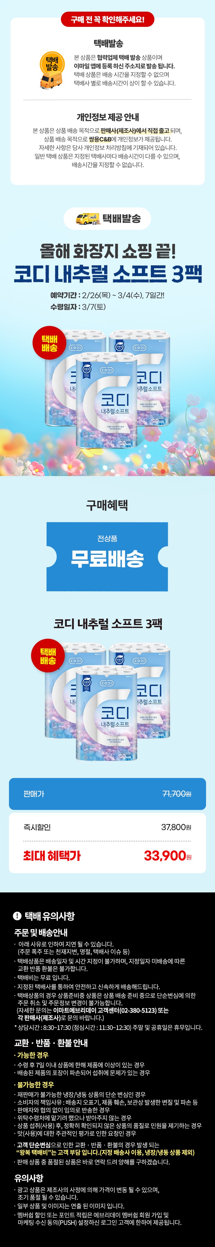 코디 내추럴소프트3겹 27m*30롤 3팩