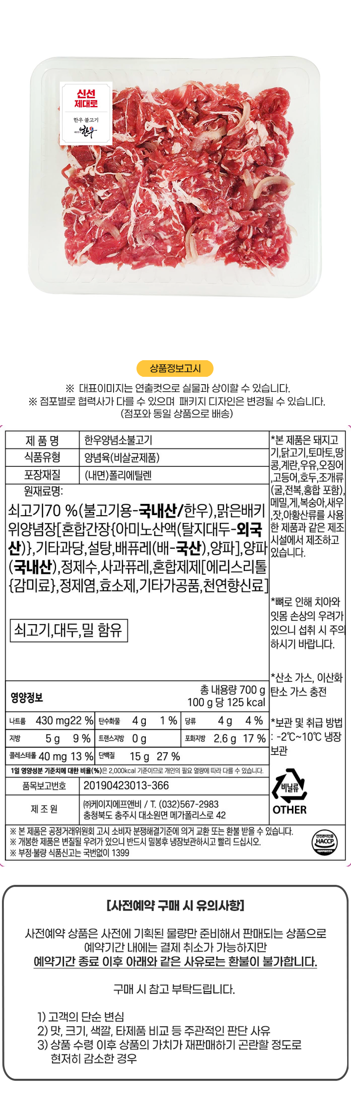 [사전]한우양념소불고기700g