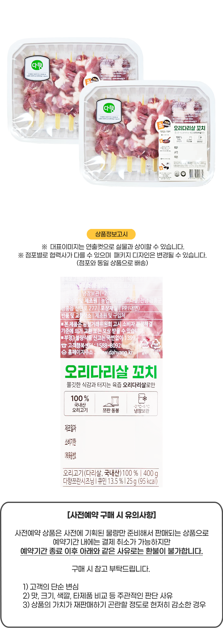 [사전] 다향 오리다리살꼬치400g*2팩