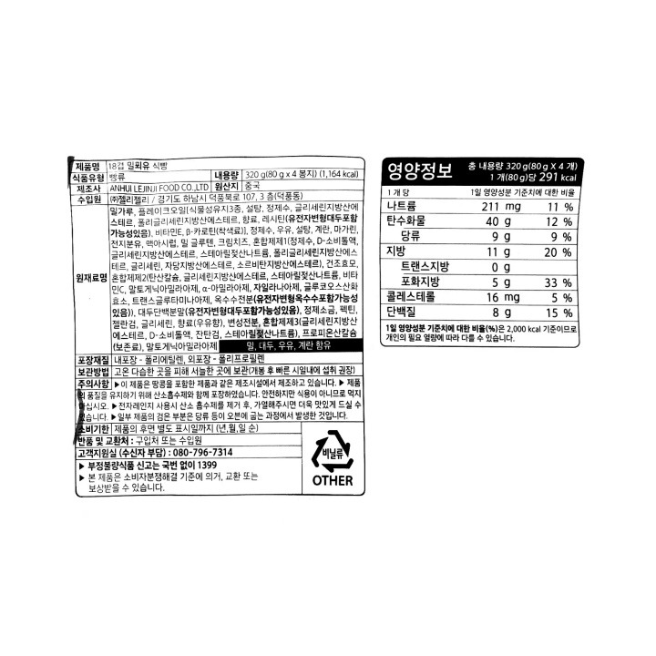 유전자 변형 식품 여부 | 상품 상세페이지 참조 |