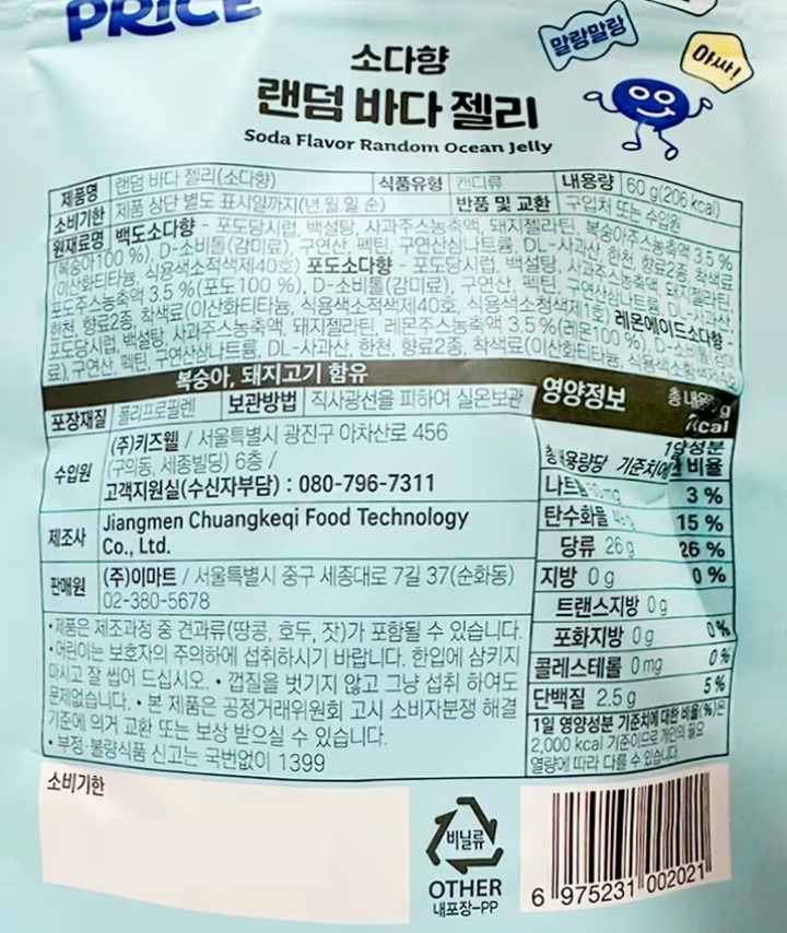 5K프라이스 소다향 랜덤 바다 젤리 60g