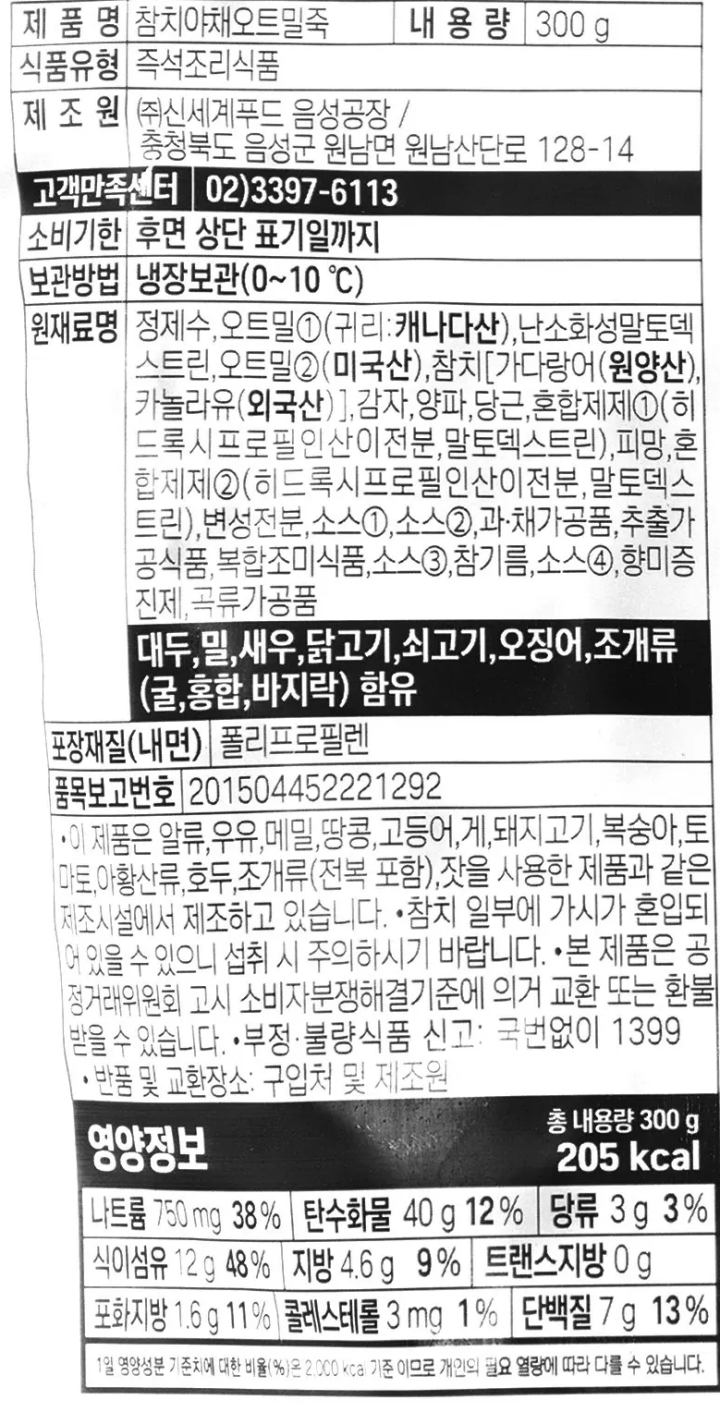 | 원재료명 및 함량 | (농수산물의 원산지 표시에 관한 법률에 따른 원산지 표시 포함) |