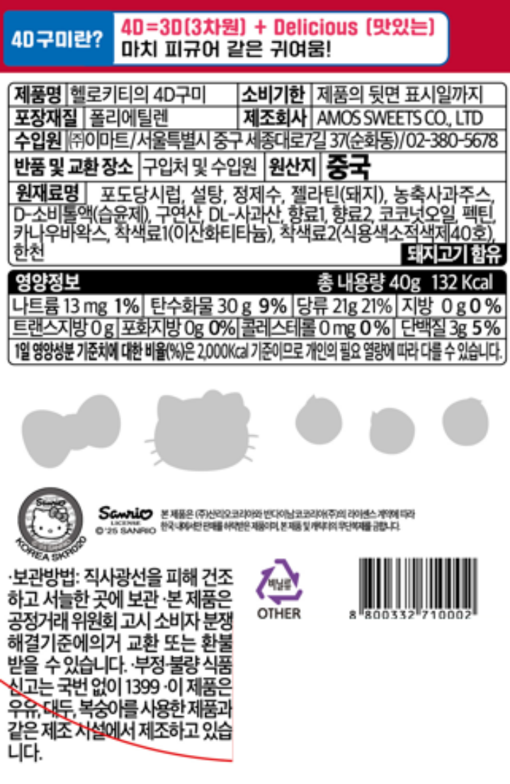산리오 헬로 키티 4D 구미 40g