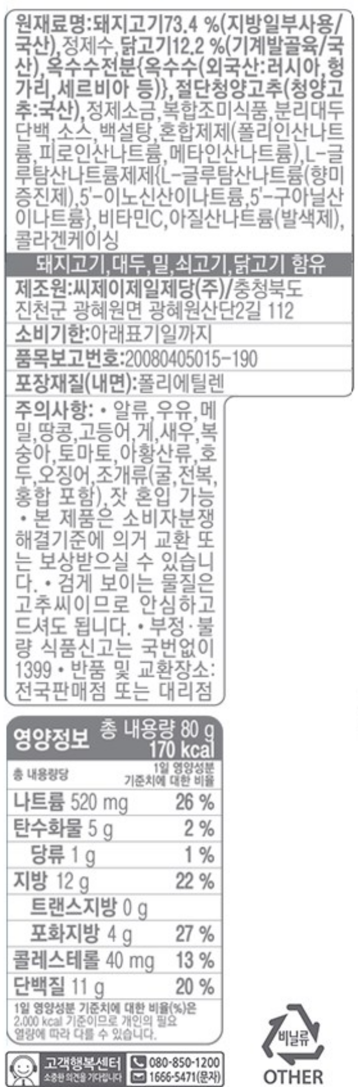 CJ 맥스봉 청양고추 후랑크 80g