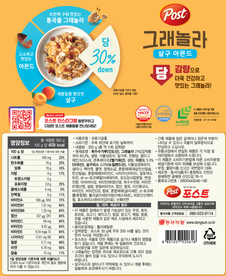 | 유전자 변형 식품 여부 | 유전자 변형 식품에 해당하는 경우 표시 |