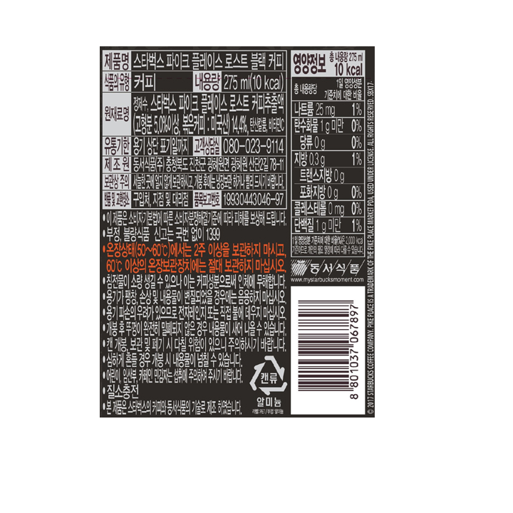 | 제품명 | 스타벅스 파이크플레이스로스트 블랙 275ml |