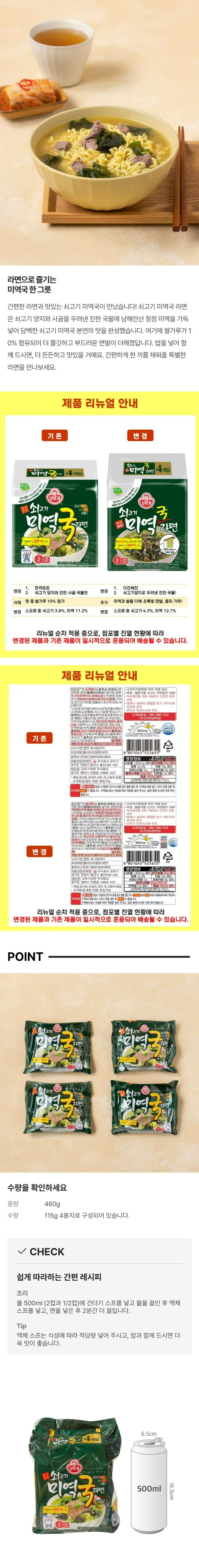 | 제품명 | 오뚜기 쇠고기미역국라면 115g*4입 |