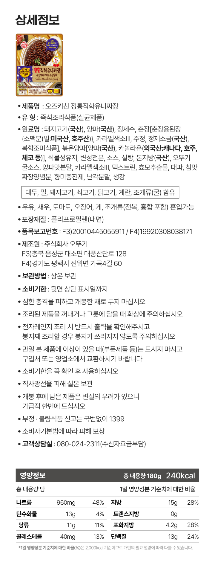 오뚜기 오즈키친 정통직화유니짜장 180g