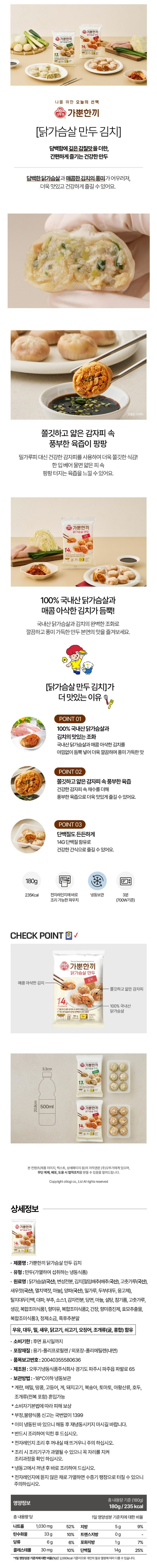 오뚜기 가뿐한끼 닭가슴살 만두(김치) 180G
