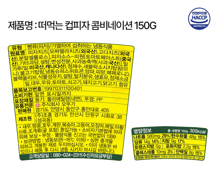 | 원재료명 및 함량 | (농수산물의 원산지 표시에 관한 법률에 따른 원산지 표시 포함) |