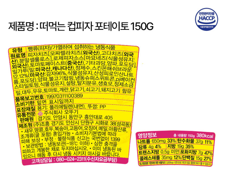 | 원재료명 및 함량 | (농수산물의 원산지 표시에 관한 법률에 따른 원산지 표시 포함) |