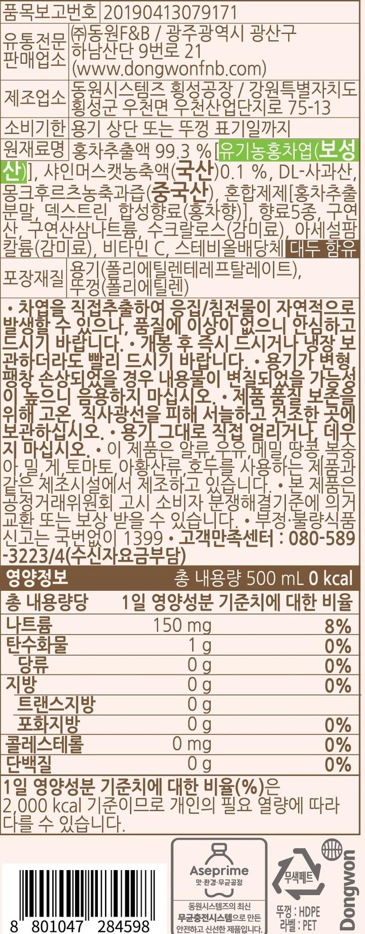 동원 보성홍차 샤인머스캣 500ml