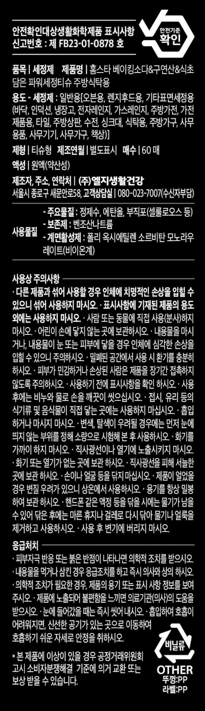 | 제품 유해성/위해성 표시 | 상품 상세페이지 참조 |