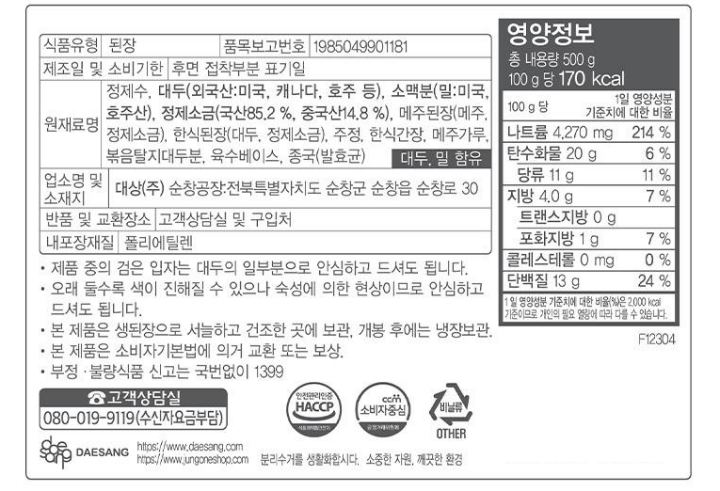 | 유전자 변형 식품 여부 | 유전자 변형 식품에 해당하는 경우 표시 |