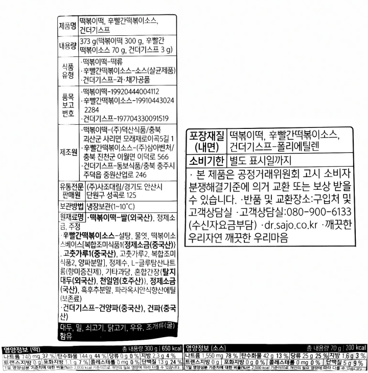 대림 빨간떡볶이 373g