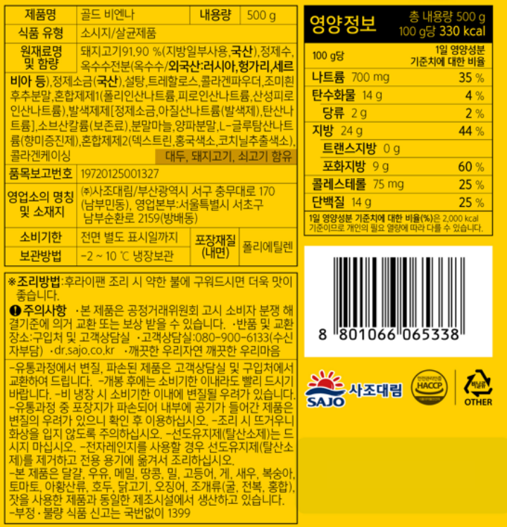 | 원재료명 및 함량 | (농수산물의 원산지 표시에 관한 법률에 따른 원산지 표시 포함) |