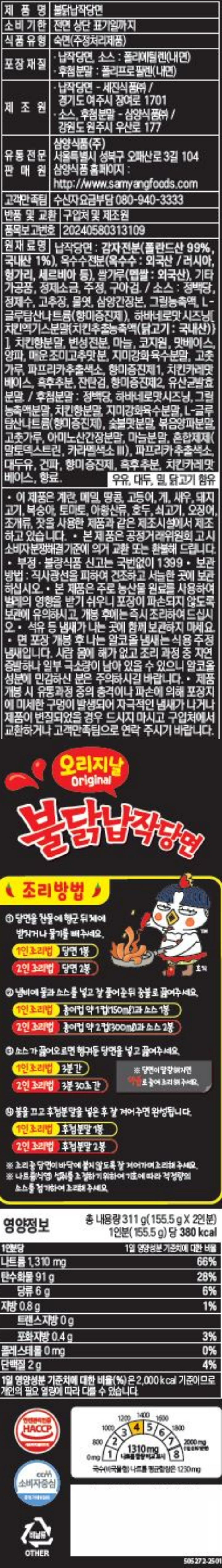 삼양 불닭납작당면 155.5g*2개