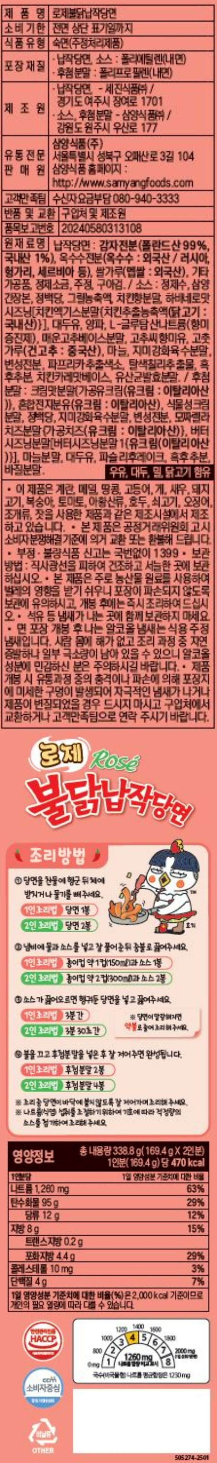삼양 로제불닭납작당면 169.4g*2개