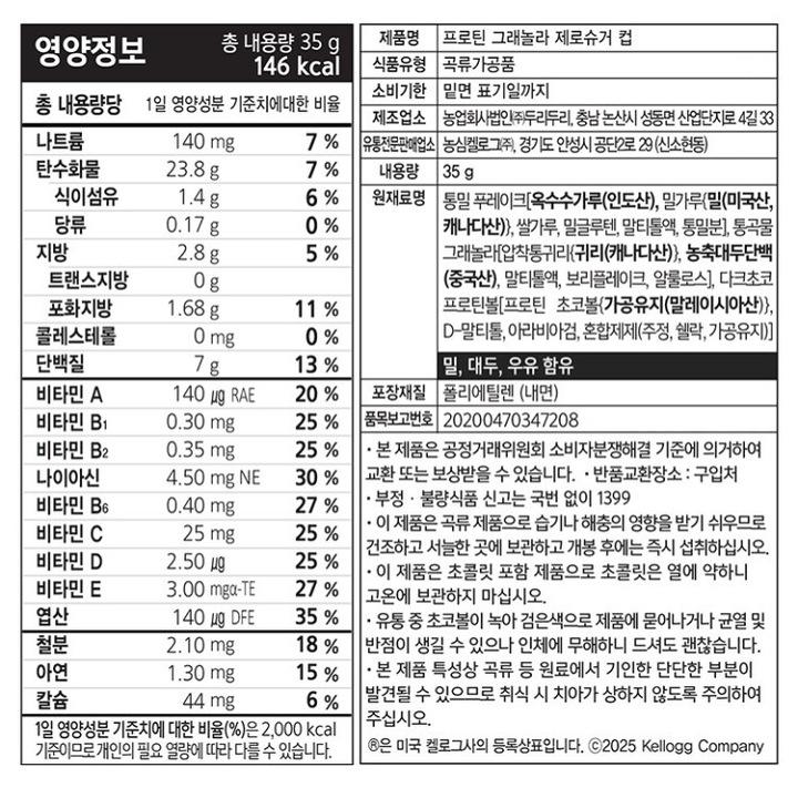 | 제품명 | 켈로그 프로틴 그래놀라 제로슈거 컵시리얼 35g |