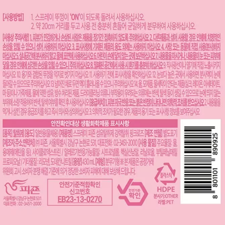 피죤 섬유탈취제 430mL(핑크로즈)