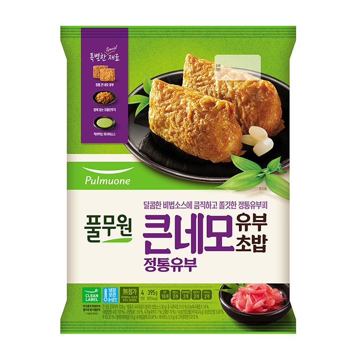 | 원재료명 및 함량 | *큰네모조미유부:대두(외국산:미국,캐나다,중국 등), 일본식유부조미액베이스[기타과당,포도당,소스(정제소금:국산),양조간장(탈지대두:인도산,미국산,중국산),기타설탕,설탕],정제수,대두유(대두/외국산:미국,브라질,파라과이 등),염화마그네슘,염화칼슘,혼합제제(식물성유지,레시틴,탄산칼슘)*벌꿀과사과과즙이함유된초밥소스:설탕,사과식초[주정,농축사과즙(중국산),포도당],정제수,정제소금(국산),사양벌꿀(국산),사과농축액,과일야채발효당,구연산,DL-사과산,효모식품,효모추출물*숙성 간장꼬들 단무지:절임무{무(국산),정제소금(호주산)},정제수,설탕,기타과당,양조간장{탈지대두:인도산,미국산,중국산),소맥(미국산)},정제소금(국산),가쓰오엑기스-P,콩발효농축액,패각발효칼슘,과일야채발효당,밀분해추출물,효소처리스테비아,비타젠S,구연산,5'-이노신산이나트륨 *참깨야채 볶음:볶음참깨(인도산),건당근후레이크(중국산/건당근,포도당),청경채분태(중국산),계란후레이크-2(전란분,전분,밀가루,난백분,글리세린지방산에스테르),계란난황립(락토밀,소맥전분,난황분말,덱스트린,정제소금),검정깨,구이김후레이크*와사비소스-N:정제수,서양고추냉이분말(중국산),설탕,옥수수기름{옥수수기름(옥수수:외국산/럭시아,헝거리,세르비아 등)}, 와사비씨즈닝-P[복합조미식품(팜유:말레이시아산),덱스트린,포도당,와사비분{와사비분(서양고추냉이분:중국산)},올레오레진�L시컴],와사비분,정제소금,구연산,주정,비타민C,혼합제제(덱스트린,치자청색소,홍화황색소),터머릭분말 |