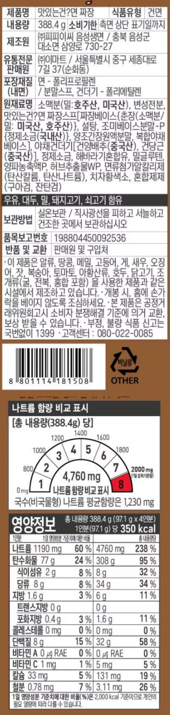 | 원재료명 및 함량 | (농수산물의 원산지 표시에 관한 법률에 따른 원산지 표시 포함) |