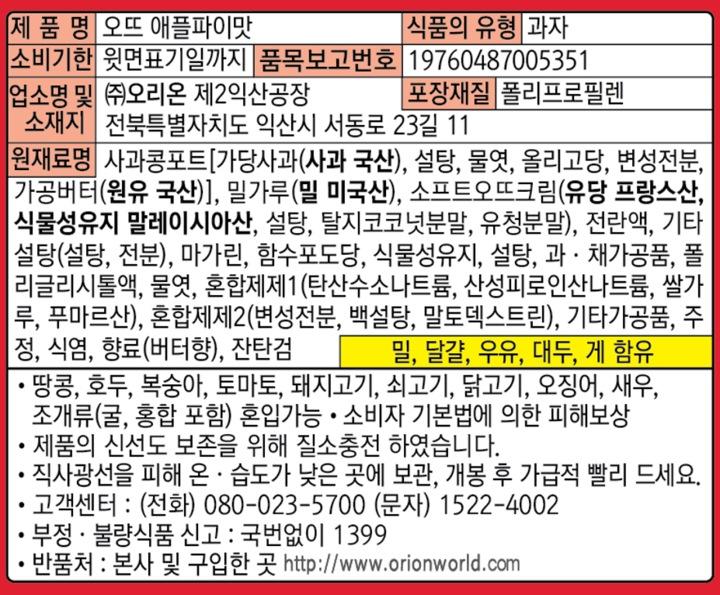 오리온 오뜨 애플파이맛 192g