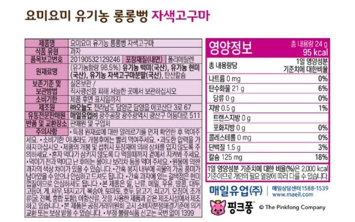 요미요미 유기농 롱롱뻥 자색고구마 24g