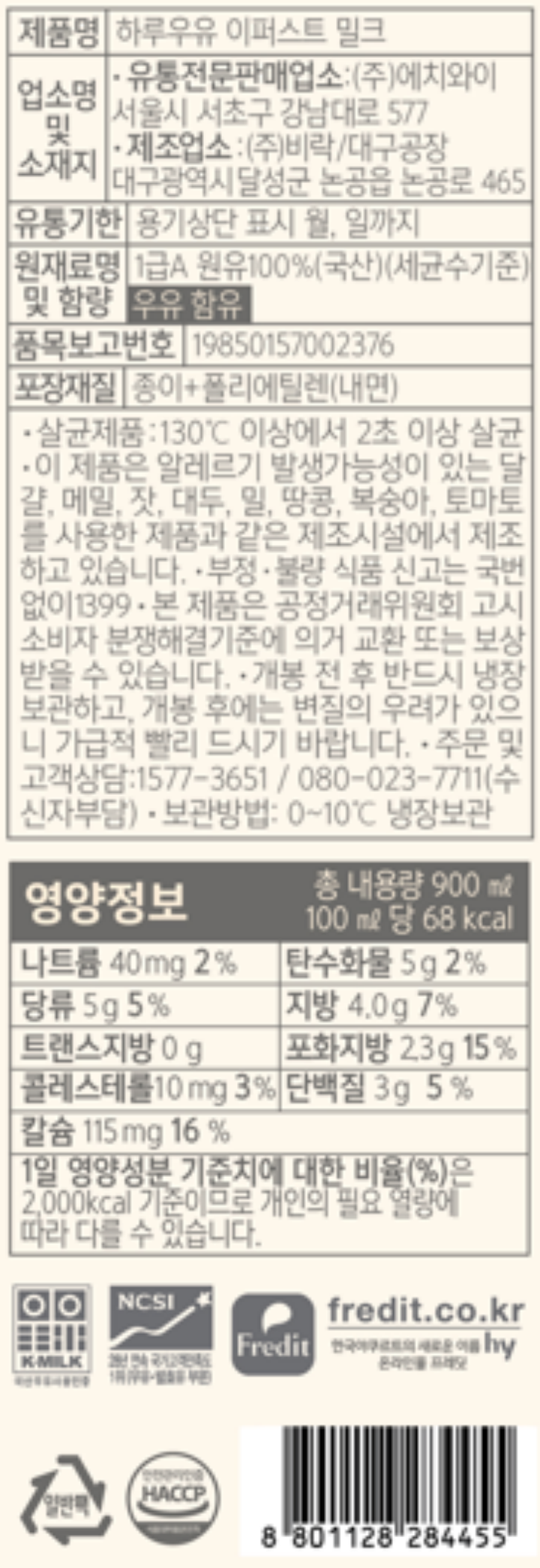 hy 하루우유 E퍼스트밀크 900ml