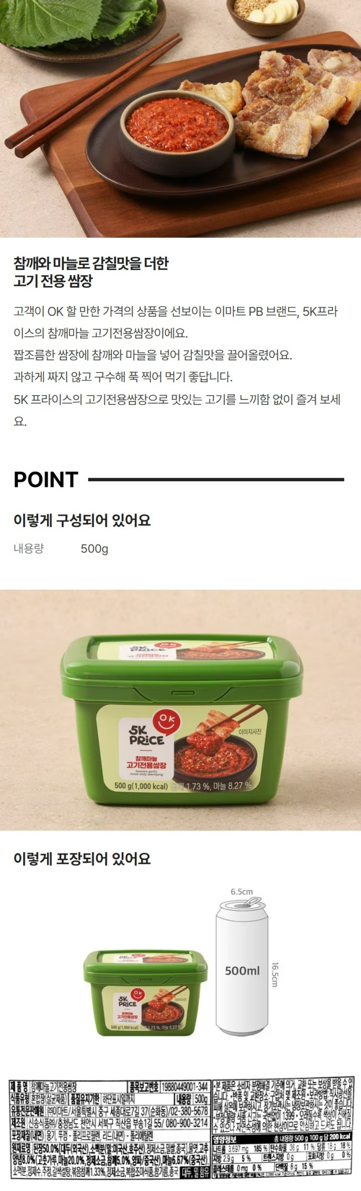 | 원재료명 및 함량 | (농수산물의 원산지 표시에 관한 법률에 따른 원산지 표시 포함) |
