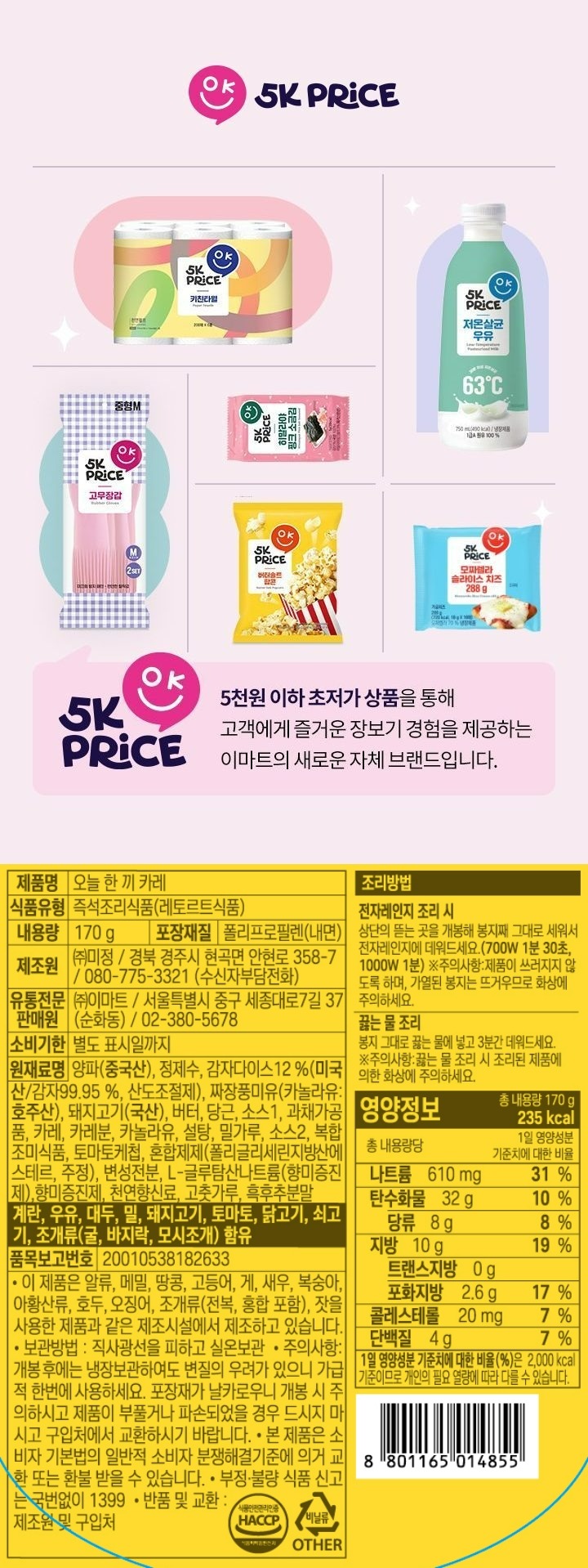 | 유통(소비)기한 | 점포 배송 상품으로 각 점포별 제조일과 입고일이 상이하여, 유통(소비)기한이 다릅니다.점포 상품과 동일한 품질을 유지한 상품이 배송됩니다.※ 해당 정보에 관한 문의는 고객센터(02-380-5123)으로 문의 해 주세요.주문일로부터 유통(소비)기한이 168일 이상 남은 상품을 판매합니다. |