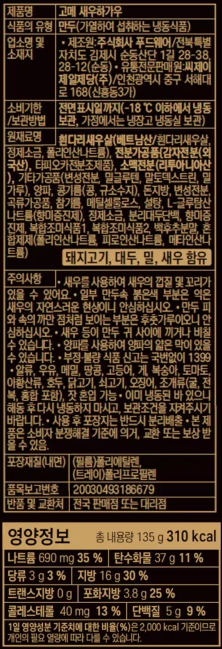 CJ 고메 새우하가우 135g