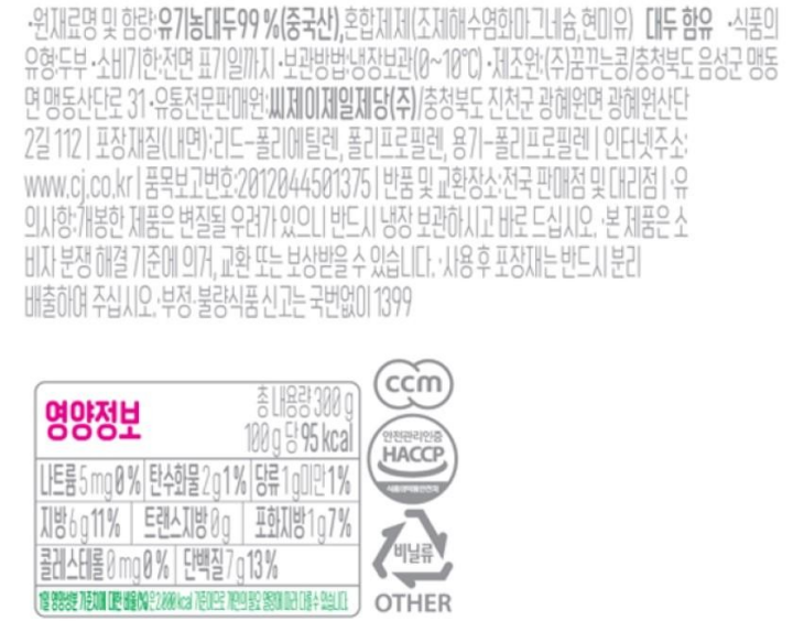 CJ 행복한콩 유기농두부 부침용 300g
