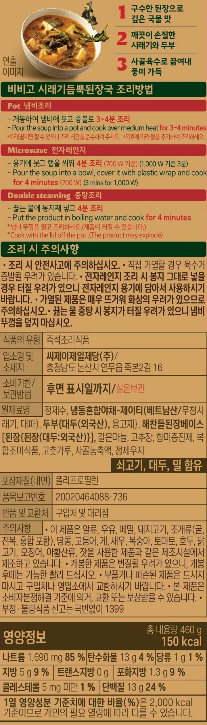 | 제조연월일, 소비기한 또는 품질유지기한 | 상품 상세페이지 참조 |