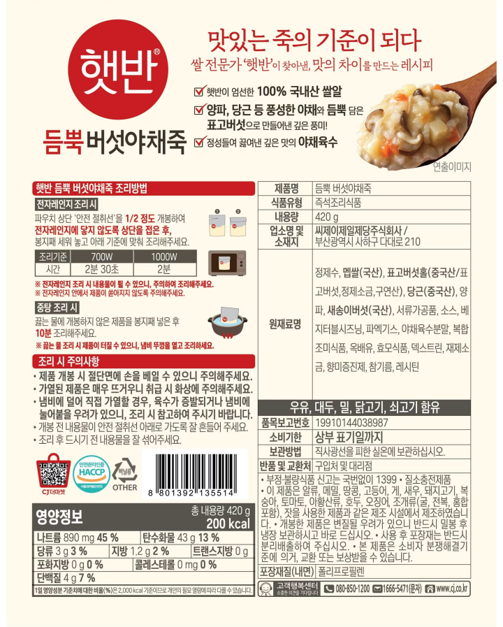 | 원재료명 및 함량 | (농수산물의 원산지 표시에 관한 법률에 따른 원산지 표시 포함) |