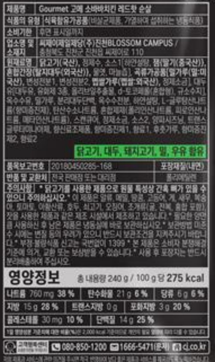 CJ 고메소바바치킨 레드핫순살 240g