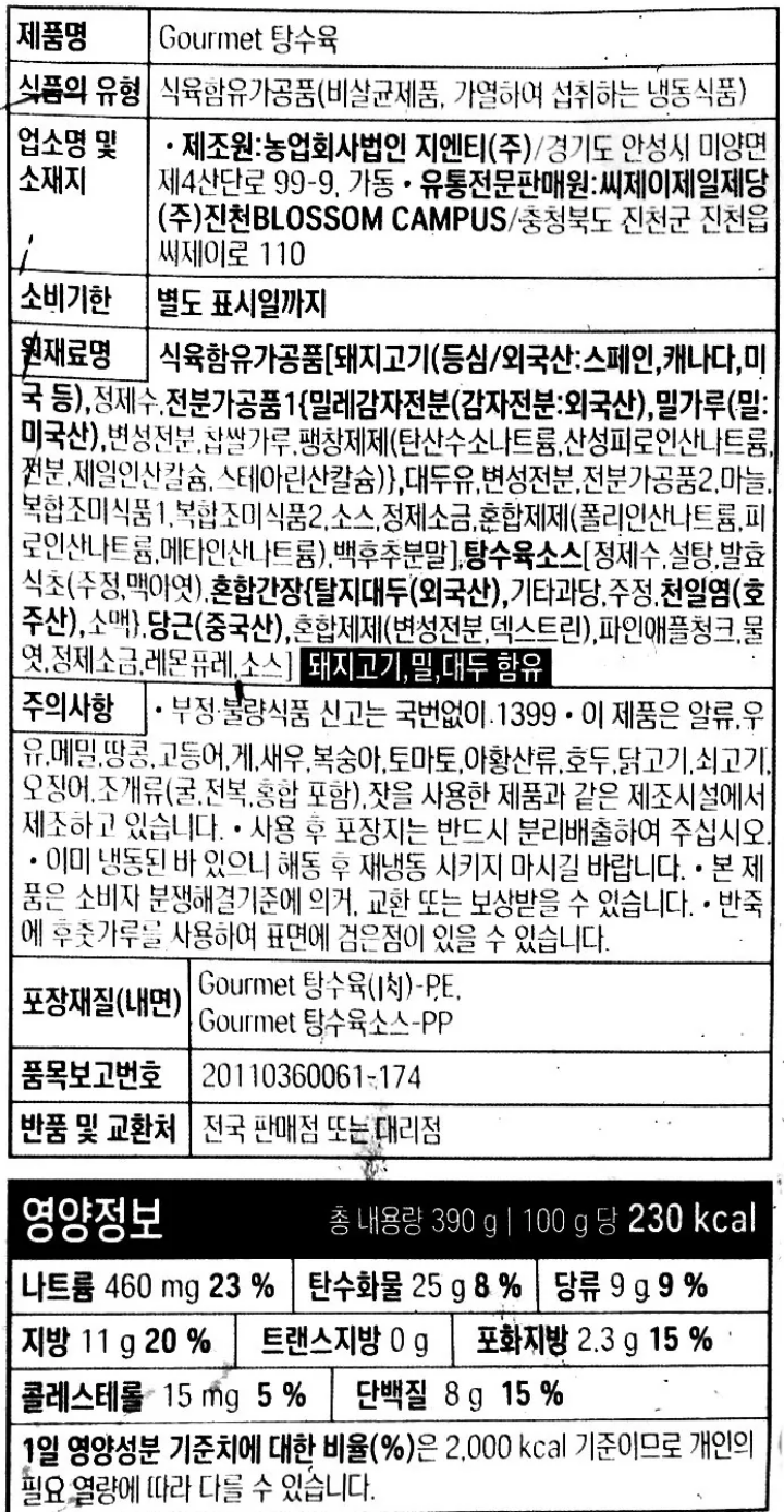 | 유전자 변형 식품 여부 | 유전자 변형 식품에 해당하는 경우 표시 |