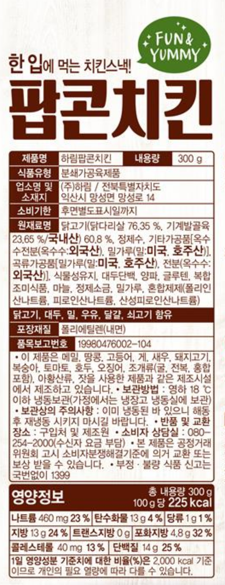 | 원재료명 및 함량 | (농수산물의 원산지 표시에 관한 법률에 따른 원산지 표시 포함) |