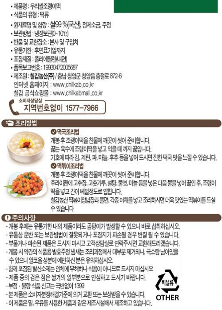 | 원재료명 및 함량 | (농수산물의 원산지 표시에 관한 법률에 따른 원산지 표시 포함) |
