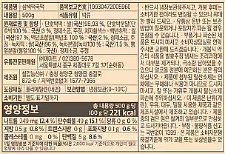 | 원재료명 및 함량 | (농수산물의 원산지 표시에 관한 법률에 따른 원산지 표시 포함) |