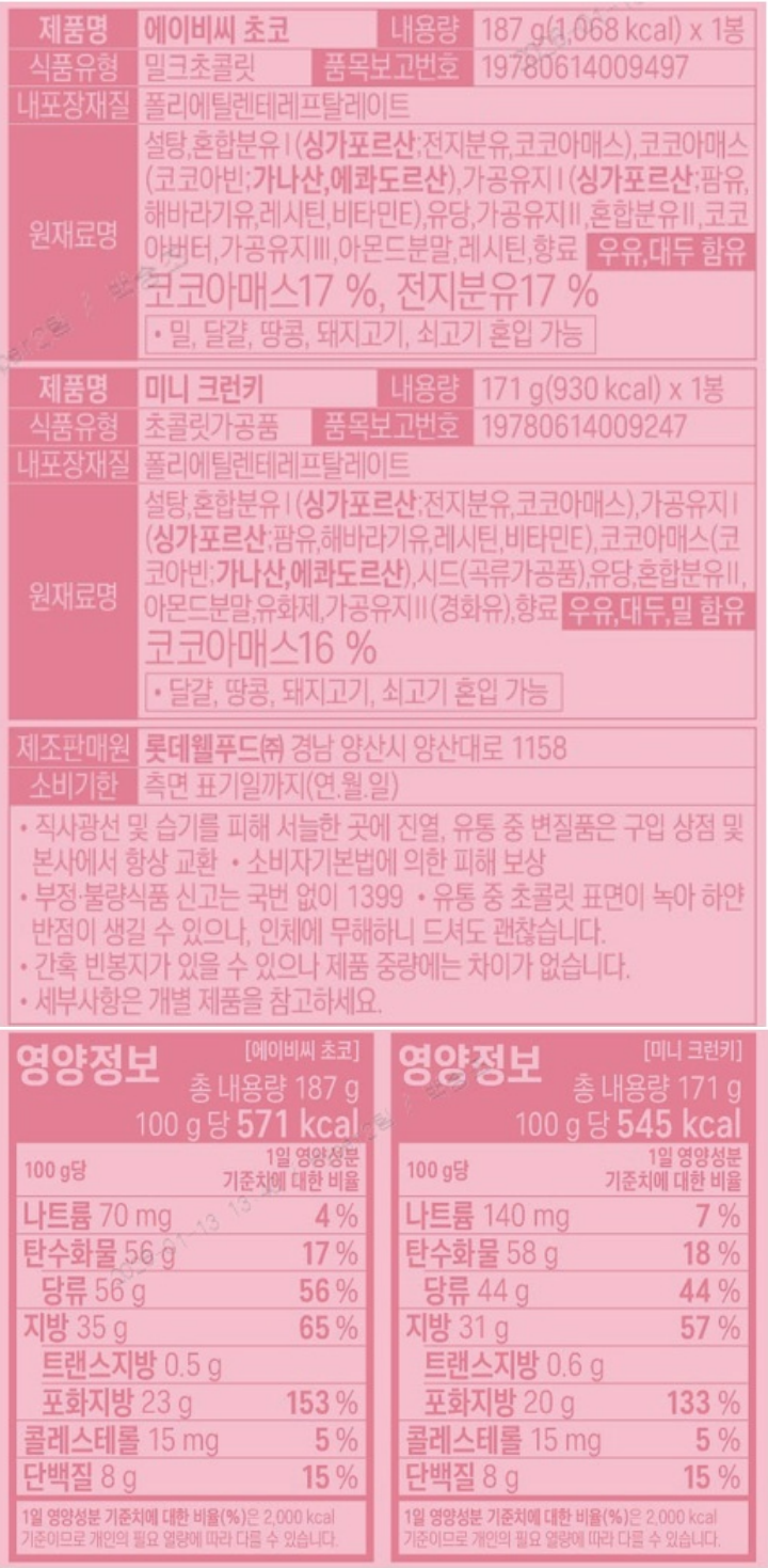 롯데 잔망루피 ABC&크런키 파우치기획 358g