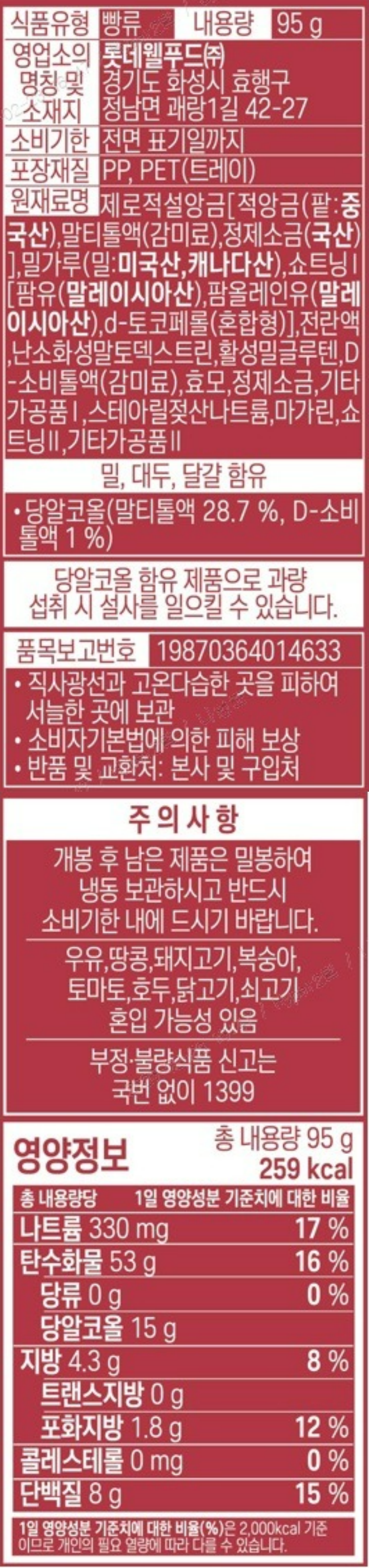 | 수입식품안전관리 특별법에 따른 수입신고 필함 여부 | 해당 없음 |