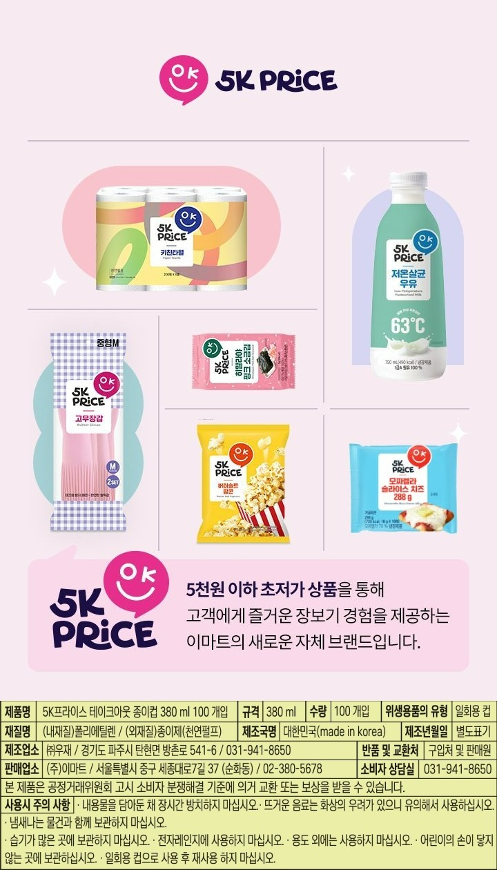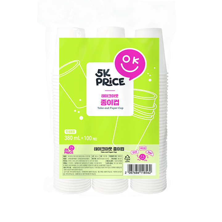 5K프라이스 테이크아웃 종이컵 380ml 100입