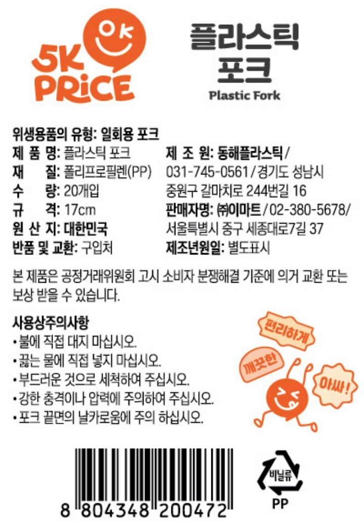 5K프라이스 플라스틱 포크 20P